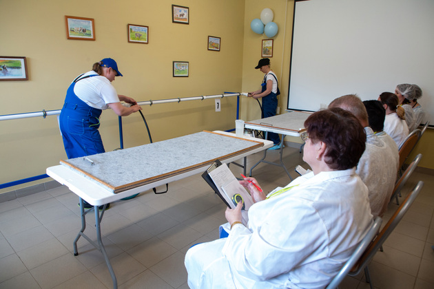 Главный судья конкурса, начальник отдела животноводства и племенного дела министерства сельского хозяйства Ирина Арапова, рассказала о формате соревнований. Программа включала четыре этапа: теоретическое тестирование, проверку санитарной подготовки, сборку и разборку доильного аппарата на время, а также практическое доение коров. Ключевым моментом стало выполнение привычных действий в условиях повышенного внимания со стороны комиссии и ответственности за результат.