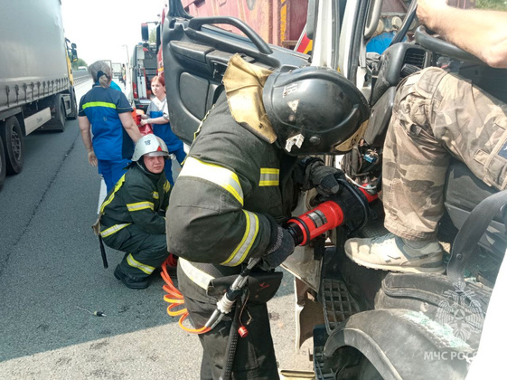 Спасатели вытащили пострадавшего - водителя большегруза. К ликвидации последствий ДТП от МЧС России привлекали 7 специалистов и 2 единицы техники.