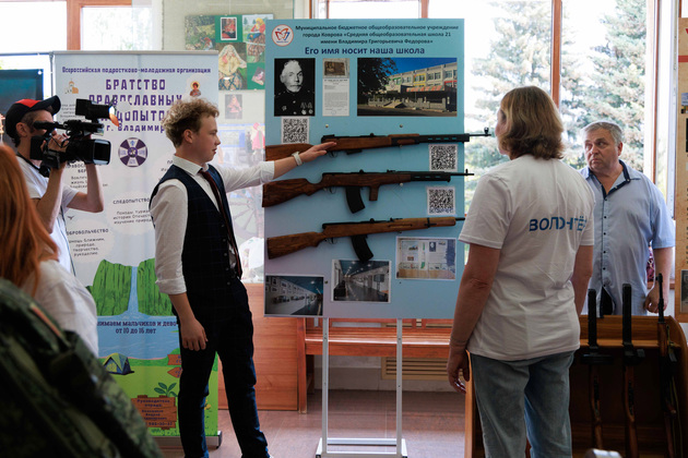 Перед церемонией открытия Гости ознакомились с экспозицией, которую представил командир поискового отряда «Владимирец», активный участник движения «Часовые памяти» Григорий Казаков. Экспонаты помогают понять смысл и задачи СВО, представить образ
