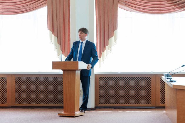 Спикер передала «бразды правления» на слушаниях председателю бюджетного комитета Заксобрания Михаилу Максюкову. А тот пригласил выступить главного докладчика - исполняющего обязанности министра финансов Владимирской области Максима Васенина.