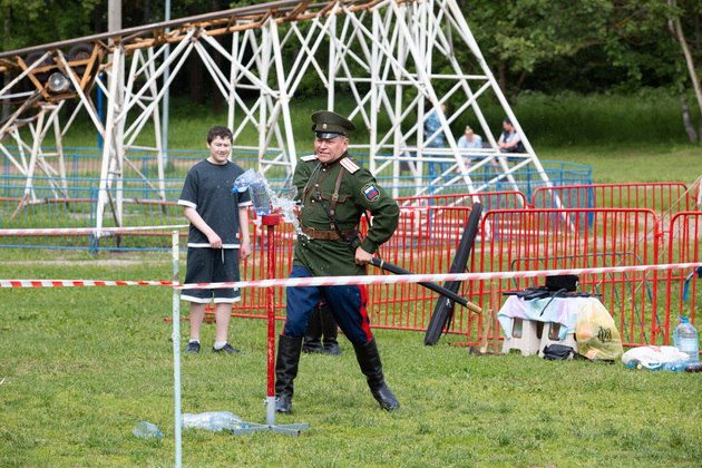 Степан Буянов, атаман Военно-патриотического союза казаков Владимирской области, рассказал о фестивальном развлечении для детей, которое направлено на знакомство с казачьими традициями и боевыми искусствами. Особое внимание уделяется искусству владения шашкой – древнему символу казачьей культуры. Детям предлагают попробовать свои силы в рубке пластиковых бутылок, наполненных водой, а также лозы. Это зрелищное упражнение демонстрирует навыки, которые традиционно передаются из поколения в поколение.