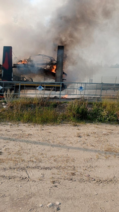 Все семь гоночных автомобилей, которые были на его платформе, также сгорели. От них остались остовы.