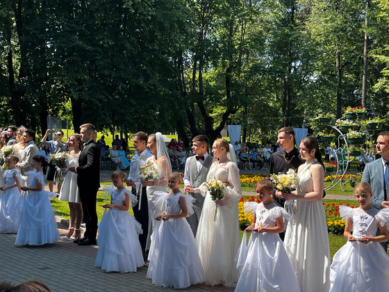 Церемонию бракосочетания владимирских пар провела начальник отдела ЗАГС администрации города Владимира Яна Митрохина. Супруги хором ответили «Да» и обменялись обручальными кольцами. А после станцевали свой первый танец - свадебный вальс.