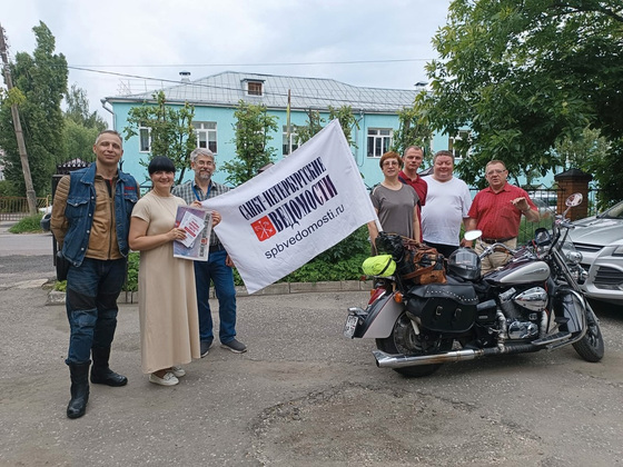- По всей России весь год проходят замечательные события акции, посвящённые Великой Победе. Не остались в стороне и российские мотоциклисты. В конце июня из Владивостока стартовала колонна патриотического мотопробега, в которую собрались мотоциклисты со всех уголков страны. Эта колонна сейчас едет в сторону Выборга. «Санкт-Петербургские ведомости» - это газета, которой уже почти 300 лет. В советские годы носила название «Ленинградская правда» и была с ленинградцами все годы блокады. Выходила каждый день, несмотря на чудовищные блокадные условия. И каждым своим номером газета поддерживала дух и силу воли героических защитников Ленинграда.