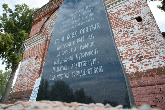 - Когда построили церковь в Новофетинине - неизвестно, - пишет в своем изыскании кольчугинский историк и краевед Надежда Дубровина. - В 1822 году прежний деревянный храм сгорел. Селом тогда владела Наталья Александровна Зубова (Суворочка), на ее средства началось возведение каменного храма. Строился он долго. Суворочка успела выстроить храм с двумя престолами: Козмодемьянский был освящен в 1831 году, а главный во имя Всех Святых - в 1842-м. Продолжила храмостроение дочь Суворочки Любовь Николаевна Леонтьева. При ней возвели придел во имя Николая Чудотворца, который освятили в 1859 году. Сельский храм получился большой, пятиглавый, с тремя престолами и каменной колокольней - красивейший, вместительный. Пожалуй, самый богатый в окру́ге.
