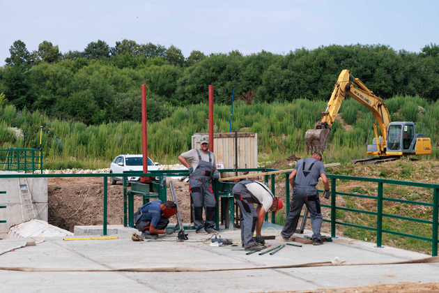 - На сегодняшний день на объекте выполнены демонтаж береговых устоев (левого и правого) и их устройство заново, устройство обводного канала с водосливной перемычкой и водопропускными трубами. Также мы смонтировали затворные рамы и подъемные механизмы с затворами донного водоспуска. Сейчас мы выполняем работы по удалению некачественного слоя бетона на водосливе и водосборном колодце, устанавливаем анкера и сетку, укрепляем рисберму каменной наброской, - объяснил директор компании-подрядчика Сергей Куценко.
