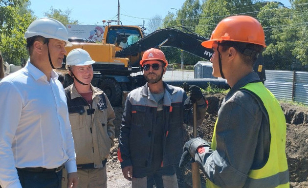 Илья Букалов в сопровождении Эдуарда Будыкина прошел вдоль участка реконструкции, побеседовал с рабочими.