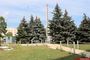 Стела и площадка будут подвечиваться в вечернее время. Освещение смонтировано. Уложена тротуарная плитка и благоустройство газонов.