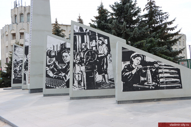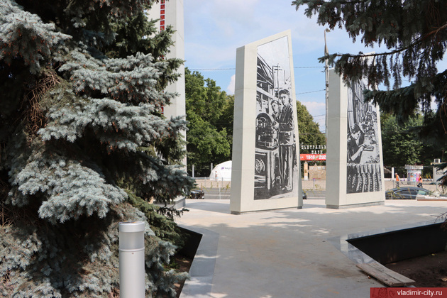Вчера глава города Дмитрий Наумов посетил строительную площадку. с весаны здесь кипит работа. К началу августа стела «Владимир — город трудовой доблести» готова, пилоны - также. На самой стеле размещены герб города и литой алюминиевый рельеф с текстом указа Президента России о присвоении Владимиру почетного звания «Город трудовой доблести».