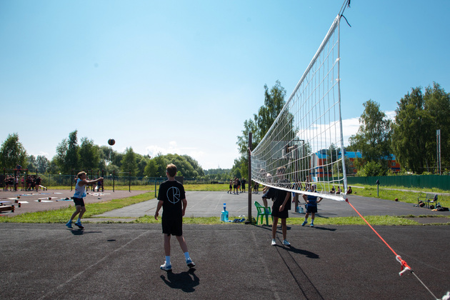 Что касается объектов для отдыха, в лагере есть несколько спортплощадок. Ребята могут играть в волейбол на площадке с песочным покрытием. У нас есть две баскетбольные площадки, которые тоже в следующем году модернизируем, есть современные уличные тренажеры, танцевальный и актовый залы.