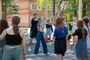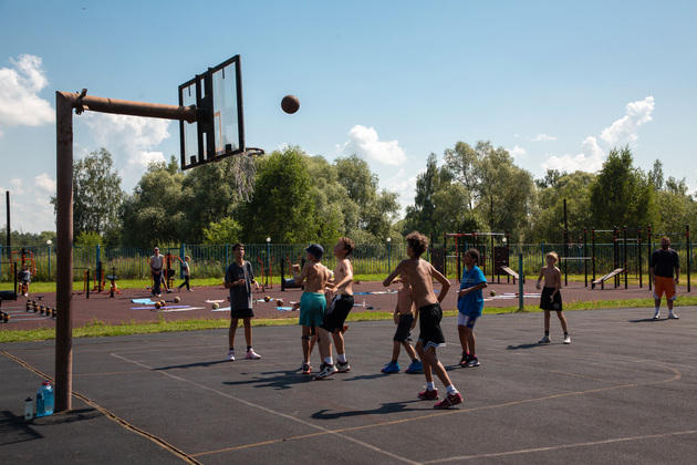 На спортплощадках занимаются баскетболисты и волейболисты - царит атмосфера спортивного азарта и командной игры.