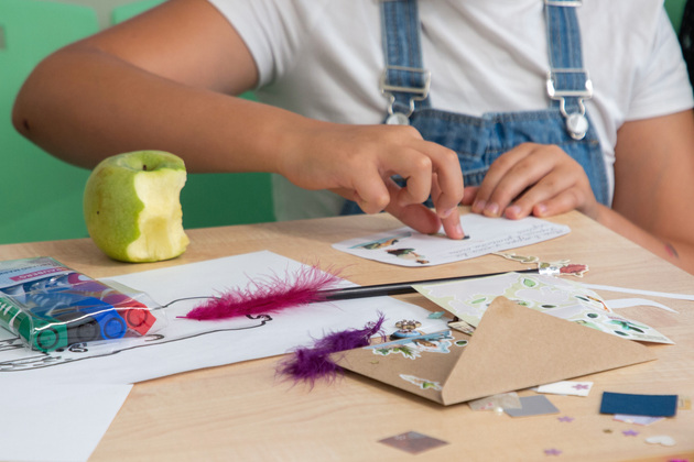 В соседней аудитории ребята помладше изготавливают подарки для своих друзей и родителей. Идут занятия кружка декоративно-прикладного искусства и рисования. Воспитатель Юлия Тарасенко предложила детям украсить открытки блестками и наклейками, сочинить добрые пожелания и вложить их в конверты, а те в свою очередь декорировать аппликациями. Для этого есть специальные творческие наборы. Рукотворный презент - это не какая-нибудь фабричная штамповка. Всегда приятно получить подарок, созданный с душой.