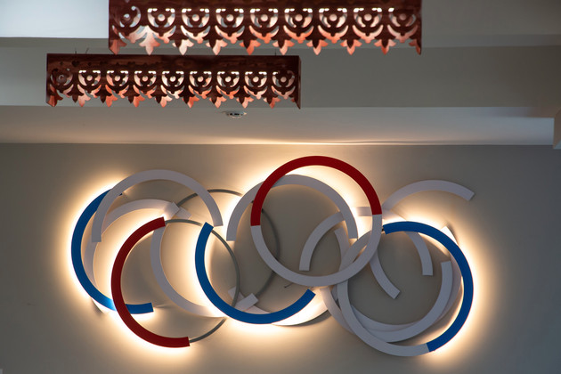 В фойе корпуса - светящиеся кольца олимпийской символики как напоминание, что это не только лагерь отдыха, но и спорта.