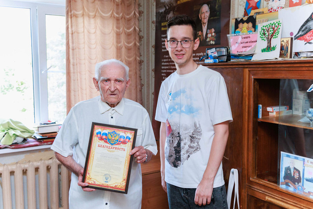 Ветераны были рады такому вниманию. Михаил Волосников поделился своими воспоминаниями о первом Параде Победы 24 июня 1945 года в Москве, в котором ему удалось поучаствовать.