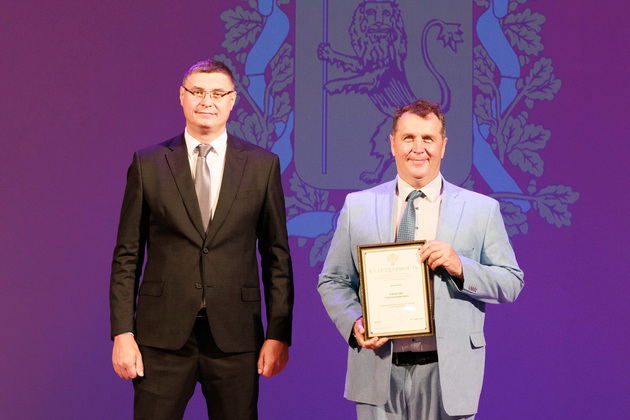 В рамках празднования Дня строителя в числе торжественных мероприятий состоялось награждение специалистов строительной отрасли за высокий профессионализм и добросовестный труд. Губернатор Александр Авдеев вручил Благодарность Министерства строительства и жилищно-коммунального хозяйства Российской Федерации электромонтёру Владимирского завода железобетонных изделий Станиславу Яблокову и исполнительному директору Объединения строителей Владимирской области Алексею Тарасову.