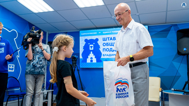 О старте акции сообщили в реготделении «Единой России». Сенатор Владимир Киселев подарил ученические наборы первым пяти ребятам.