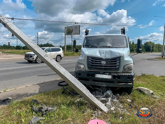 Не смогли разъехаться ГАЗон NEXT и Chevrolet Cobalt. Более того, одна из машин въехала в опору освещения федеральной трассы М-7 и повредила ее.