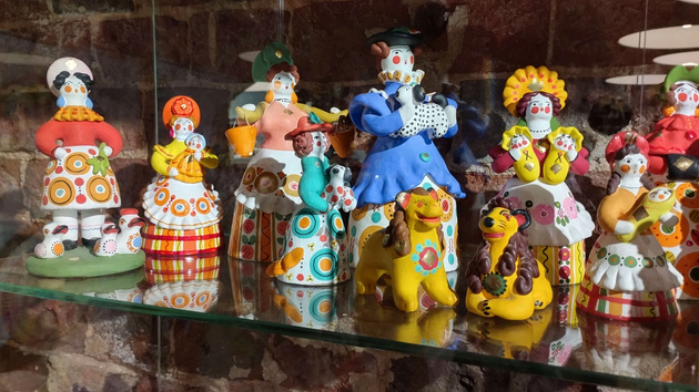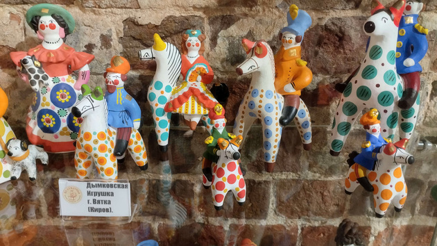 - Были статусные игрушки, как эти большие дымковские индюки. Это настоящая комодная скульптурка. Когда-то ее ставили дома на подоконник, на шкафчик, на комод, - любовались, но не играли ей. А маленькая свистулька, которая умещается в детской руке или растет вместе с ребенком, жила максимум с неделю, пока малыш ее не разобьет. Ценность ее была невелика, но удовольствие, которое она дарила ребенку, живость общения, были важны, - объясняет создательница этого удивительного мирка народной игрушки.
