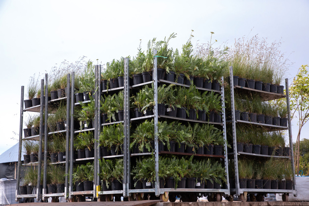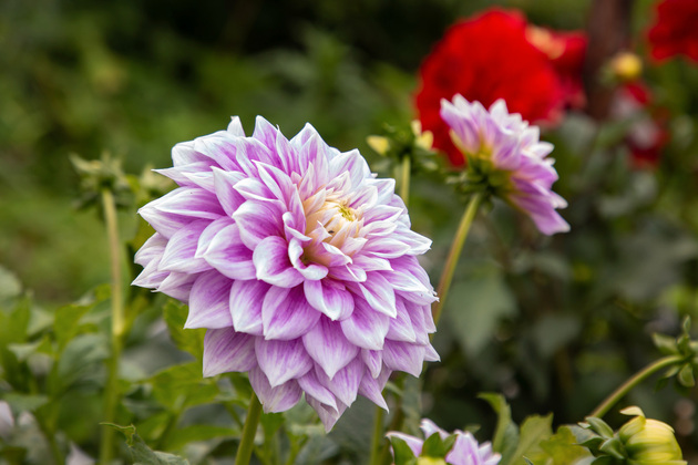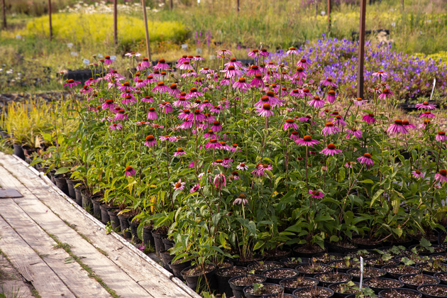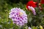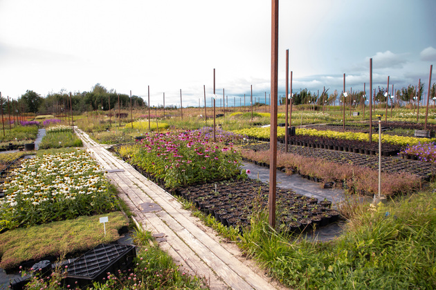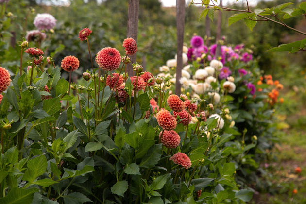 Особую гордость хозяина составляют георгины ‑ целое поле ярких, крупных цветов, которые выращиваются не только для красоты, но и на реализацию. Причем один и тот же корень он разделяет на три части, высаживая в разные горшки ‑ так цветы сохраняют силу и продолжают радовать глаз.