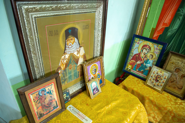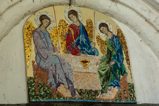 На втором этаже храма размещена мозаика, выполненная землячкой из Петербурга. Сейчас эта женщина работает над второй мозаикой ‑ в честь апостола Андрея Первозванного. Она нашла специальную плитку, способную днем накапливать свет, а вечером ‑ светиться.