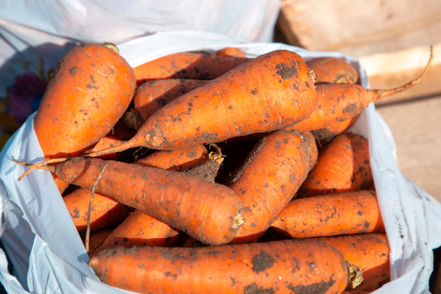 Уборку проводите в сухие солнечные дни, при температуре выше +8°C. Очень удобно использовать вилы, особенно для длинных корнеплодов. Собранные овощи уложите вдоль грядки для подсушки, очистите от земли, срежьте ботву.