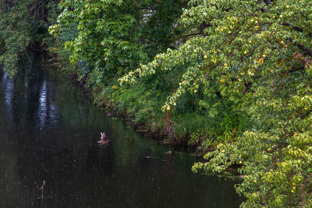 Мы находимся у «нижнего пруда» в юго-восточной части Старых садов, которые примыкают к Стрелецкому мысу. Это один из трех водоемов - то, что осталось от русла Лыбеди. Пруд облюбовали утки. К слову, в свое время прудик хотели засыпать, но общественники его отстояли.