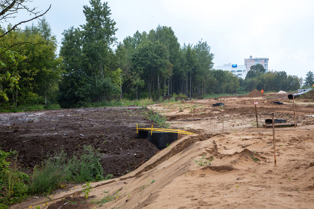 За счет строительства дамб и углубления прудов площадь водоемов увеличится. Здесь планируют обустроить набережную с прогулочными дорожками. Пока же природную гармонию нарушает строительство проезда к Октябрьскому проспекту. Видны следы вырубок.