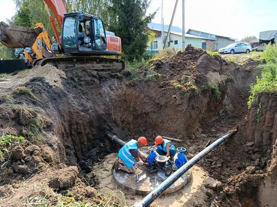 Водопровод строится из полиэтиленовых питьевых труб, а общая его протяженность составит более 1,5 км.