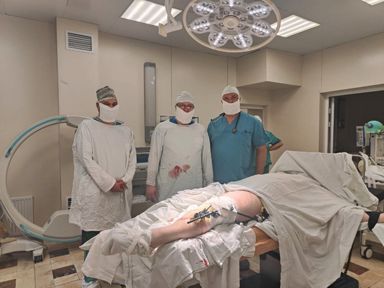 Врач Андрей Апухтин совместно с травматологами Ковровской ЦРБ сделали необходимые манипуляции и установили аппарат наружной фиксации под контролем С-дуги.