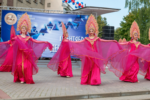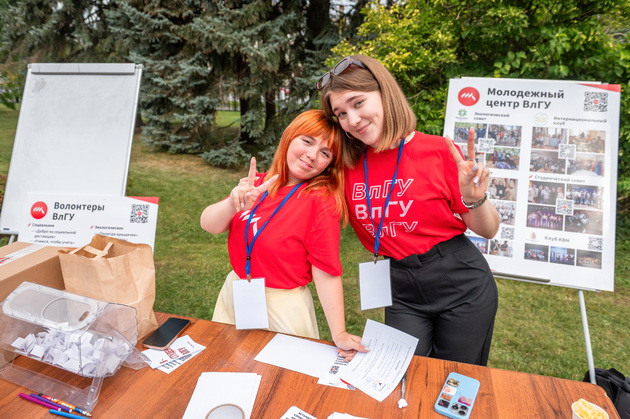 Завершился День знаний для первокурсников презентацией студенческих объединений и концертной –интерактивной программой «Дай пять!». Студенты смогли выбрать направление для саморазвития и вступить в объединения молодежного центра ВлГУ, Профсоюзной организации вуза. Университет предлагает большой выбор внеучебных активностей: патриотический клуб, волонтерство, КВН, чир-спорт, киберклуб, медиацентр, клуб интеллектуальных игр, студия ГТО.