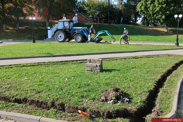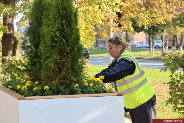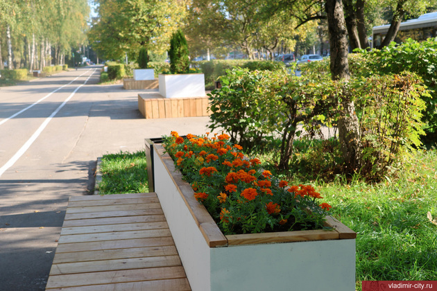 До 15 октября территорию за остановкой «Гостиница Владимир» рабочие намерены украсить хостами, барбарисом, кизильником, спиреями и другими растениями.