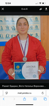 Уверенно пройдя предварительную встречу, в полуфинале Разиет оказалась сильнее вице-чемпионки молодежного первенства Европы 2024 года из Сербии. И только в финальном поединке, ведя в счете большую часть встречи, наша спортсменка в итоге все же уступила более опытной соотечественнице, которая уже учится в аспирантуре. Так дебютантка из Владимира завоевала серебряную медаль Кубка Европы среди студентов по самбо.