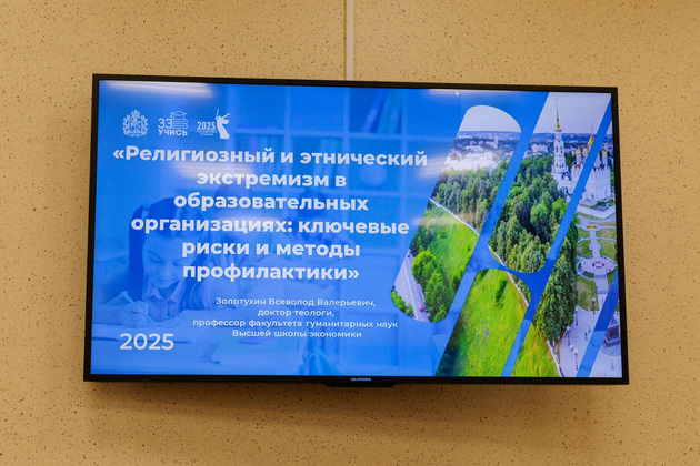 Во Владимирском институте развития образования доктор теологии, профессор факультета гуманитарных наук Высшей школы экономики Всеволод Золотухин провёл лекцию для педагогов на тему «Религиозный и этнический экстремизм в образовательных организациях: ключевые риски и методы профилактики». Одна из ключевых угроз сегодня – использование религиозных, этнических и культурных различий для разжигания вражды, считает эксперт.