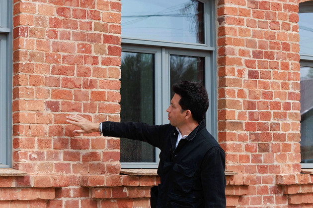 - Все эти арочки над окнами пришлось переложить. Разницы на стыках не видно, потому что мы купили старый кирпич, отшлифовали его, очистили и устанавливали в тех местах, где кирпич был выбит, - объясняет и показывает Эмиль.