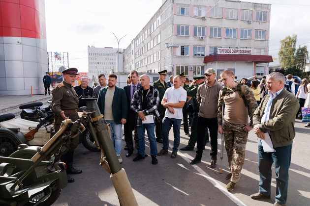 Центральным элементом стало уникальное сочетание истории и современности – передвижной музей, созданный силами общественной организации «Наследники Победы» из Коврова. Его возглавляет Сергей Мостовой, один из организаторов фестиваля. Он отметил, что трое членов их команды участвуют в специальной военной операции.