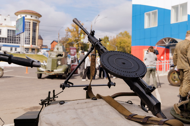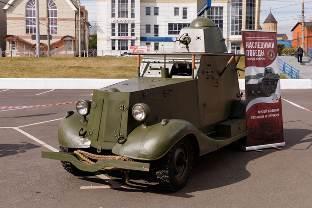 На выставке были представлены пулемётный бронеавтомобиль, противотанковая пушка «сорокапятка» и боевые мотоциклы времён Великой Отечественной войны. Одним из центральных экспонатов стал мотоцикл М-72 с установленным станковым пулемётом Дегтярева образца 1939 года (С-39), разработанным в Коврове. Из-за конструктивных недостатков, не устранённых на Тульском заводе, этот пулемёт был выпущен малой серией и почти полностью погиб в первые месяцы войны. Сегодня в стране сохранилось лишь около десяти таких экземпляров – один из них находится в коллекции «Наследников Победы».