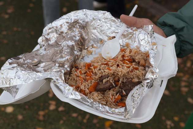 Для того чтобы участники фестиваля за несколько часов не проголодались, организаторы позаботились и о вкусном и сытном угощении – конечно, из кухни народов мира. А потчевать гостей – это для всех народов важнейшая добродетель. Участников ожидал узбекский плов, который по договоренности с «Месопотамией» доставили в удобных контейнерах из кафе прямо на кромку футбольного поля.