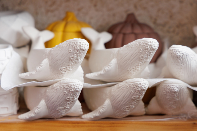Особую популярность набирают гипсовые формы, которые мастерица изготавливает самостоятельно. На каждую уходит около двух недель ‑ это кропотливый процесс, включающий заливку, сушку, тщательную шлифовку и многоэтапную обработку. Готовые формы грунтуются и покрываются шестью слоями лака: это не только придает изделию стеклянный блеск, но и предотвращает проступание воска при заливке.