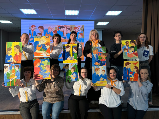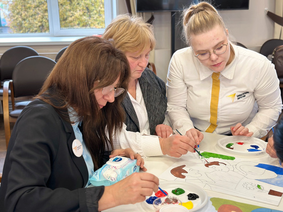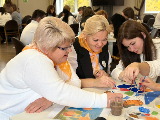 Специалист по работе с родительским сообществом проекта «Навигаторы детства» Анна Пирогова провела практику арт-тимбилдинга. Совместная творческая работа призвана помочь в командообразовании и борьбе со стрессом. Результатом мастер-класса по живописи стало панно с сюжетами семейного и школьного воспитания. Символично, что лишь наличие всех его частей позволяет увидеть полную яркую картину.