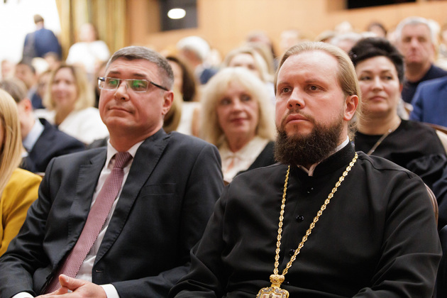 - Произведение «Черные доски» посвящено эпохе 60-х годов прошлого века, когда стало модным собирать иконы, коллекционировать и реставрировать их. Это символ возрождения того, что сгорело в огне революций. История стала постепенно возвращаться в нашу жизнь, в наши души. Это такое воскрешение. Как раз в прошлом году, к 1000-летию Суздаля, закончилась долгая реставрация одной из самых известных наших икон - Боголюбской иконы Божией Матери. Андрей Боголюбский заказал эту икону, и она была написана 870 лет назад. Реставрация святыни заняла почти сто лет! Она выставлена сейчас во Владимиро-Суздальском музее-заповеднике. И в это же время, после окончания реставрации, вышла постановка «Черные доски» талантливого режиссера Владимира Кузнецова. Я рад, что в этом зале присутствует дочь нашего великого писателя - Елена Владимировна Солоухина (в зале аплодисменты). Все эти события - символы возрождения, восстановления икон, нашей истории, нашего театра. Всё это говорит о том, что жива культура, живет Владимирская земля, живет душа и живет Россия! Я поздравляю всех с открытием нашего театра! - выступил глава региона.