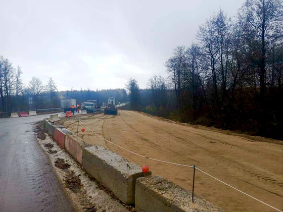 Сейчас продолжаются работы по разборке существующей дорожной одежды на подходах к мосту и идет удлинение временной объездной дороги.