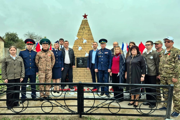 На его могиле в селе Добровольном Курского муниципального округа в знак уважения и вечной памяти о подвиге пилота Великой Отечественной войны установлена мемориальная доска.