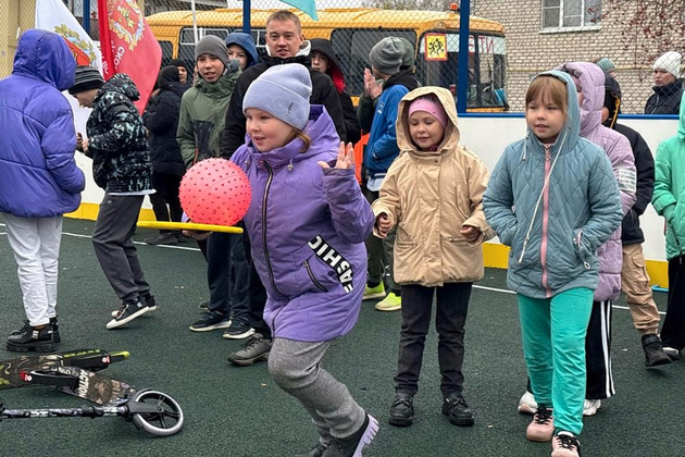 На открытие спортплощадки прошли «весёлые старты» и мастер-класс от футболистов команды «Атлетик».