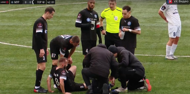 В одном из них при исполнении подката в конце первого тайма получил травму и покинул поле с помощью врача игрок «Мурома» Максим Седов.