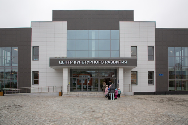Построенный в сдержанных серо-белых тонах муниципальный Центр культурного развития в Вязниках был возведен по национальному проекту «Культура», вошедшему ныне в состав нацпроекта «Семья».