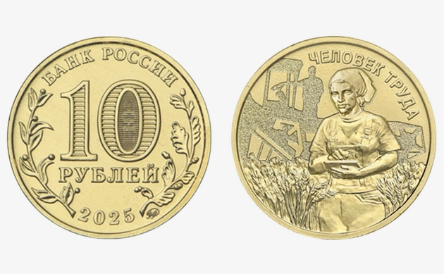 В честь работников сельского хозяйства и перерабатывающей промышленности Центробанк выпустил монету номиналом 10 рублей. Массовый тираж - 1 млн штук - вышел в обращение в октябре. На оборотной стороне монетки - рельефное изображение работницы сельского хозяйства среди колосьев на фоне механизатора на подножке комбайна.