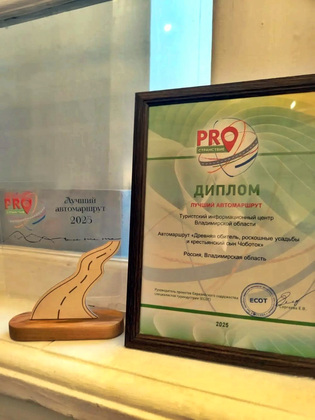 Туристический информационный центр (ТИЦ) Владимирской области был награжден в номинации «Лучшие автомаршруты-2025». Был отмечен автомаршрут «Древняя обитель, роскошные усадьбы и крестьянский сын Чоботок». Он включает посещение Гороховца, Мурома, Муромцево, Боголюбово, Владимира, Суздаля и Мстёры.