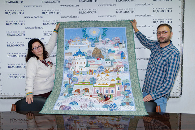 — Каждый год проходит выставка «Душа России», и мы всегда готовим две-три работы. В этом году мы выставили работу, посвященную городу Владимиру, по авторскому эскизу. Рисовала у нас девушка, она очень талантливая, зовут ее Ева Суханова. Она создавала эскиз по нашим идеям. Такая большая работа, под метр восемьдесят шириной.
