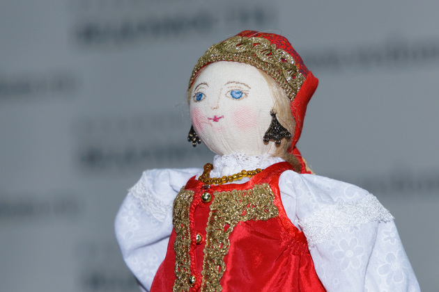 У меня дома четыре шкафа с куклами. Есть такие, которые я никуда не выношу. Вот на этой кукле копия одежды, какую носили у нас во Владимирской губернии. Сделано все как положено, простегано вручную, юбка красивая льняная. А лапти я не делаю, заказываю мастерам. По России у нас есть мастера, которые делают настоящие лапоточки. Эта кукла сделана совершенно в традиции, вышито обязательно лицо - не нарисованное, используются ткани хлопчатобумажные, льняные. Есть кукла в зимнем. Она сделана по образцам мастеров, живших на Волге, то есть там такие куклы делались. Я проходила специальный мастер-класс, и женщина, которая занималась экспедиционными куклами, то есть ездила в экспедицию, она там нашла оригинал.