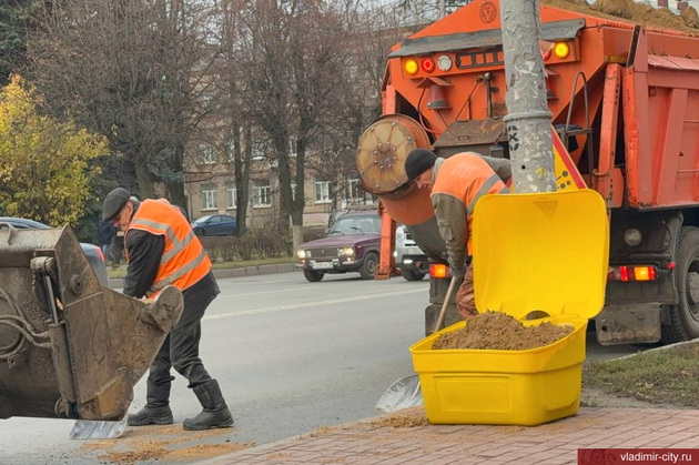 Владимирский ЦУГД готовится к зимнему сезону. Одна из главных задач - сделать улицы безопаснее для пешеходов, особенно в гололед. Сейчас рабочие устанавливают новые контейнеры с песком и солью возле автобусных остановок. Они нужны, чтобы быстро обрабатывать подходы к ним.
